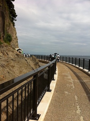 降り切ると整備された遊歩道があります。海岸にも降りれるようになっていますが、きれいな高架道路がついています。見晴らしはいいですね。
